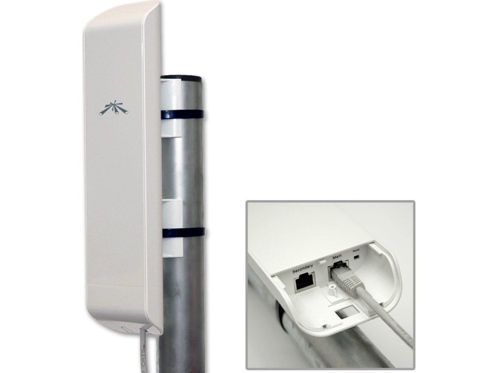 Ubiquiti NanoStation M5NanoStation (NSM5) je výkonná kompletní venkovní jednotka včetně 2x 16 dBi antény (MIMO) pro pásmo 5 GHz. Jednotka umožňuje komunikaci rychlostí až 150 Mbps.