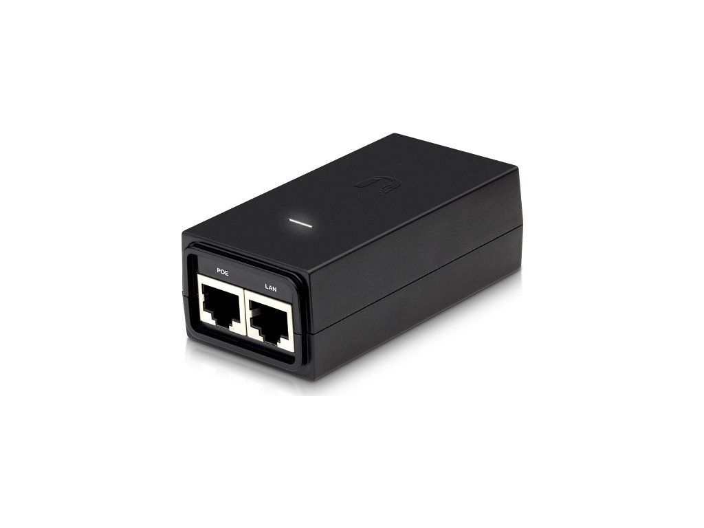 Ubiquiti POE-24-12W-G2portový pasivní PoE adaptér (injektor) pro napájení všech zařízení, které v sobě mají zabudovaný PoE extraktor a podporují napětí DC 24 V. PoE adaptér má dva gigabitové ethernetové porty.