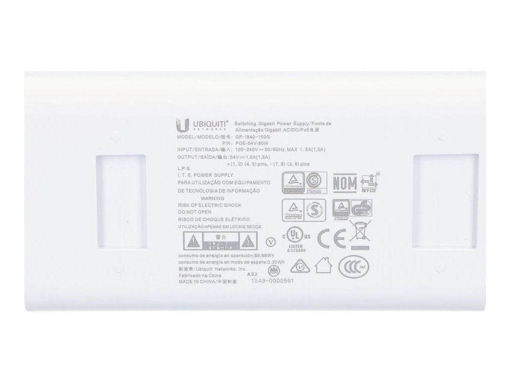 Ubiquiti POE-54V-80W - Gigabit PoE adapter 54V (1.5A) 80W, včetně napájecího kabelu