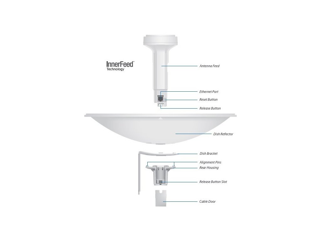 InnerFeed™ technologie integruje rádiovou část do zářiče od antény čímž odpadá potenciální ztráta na RF kabelu.
