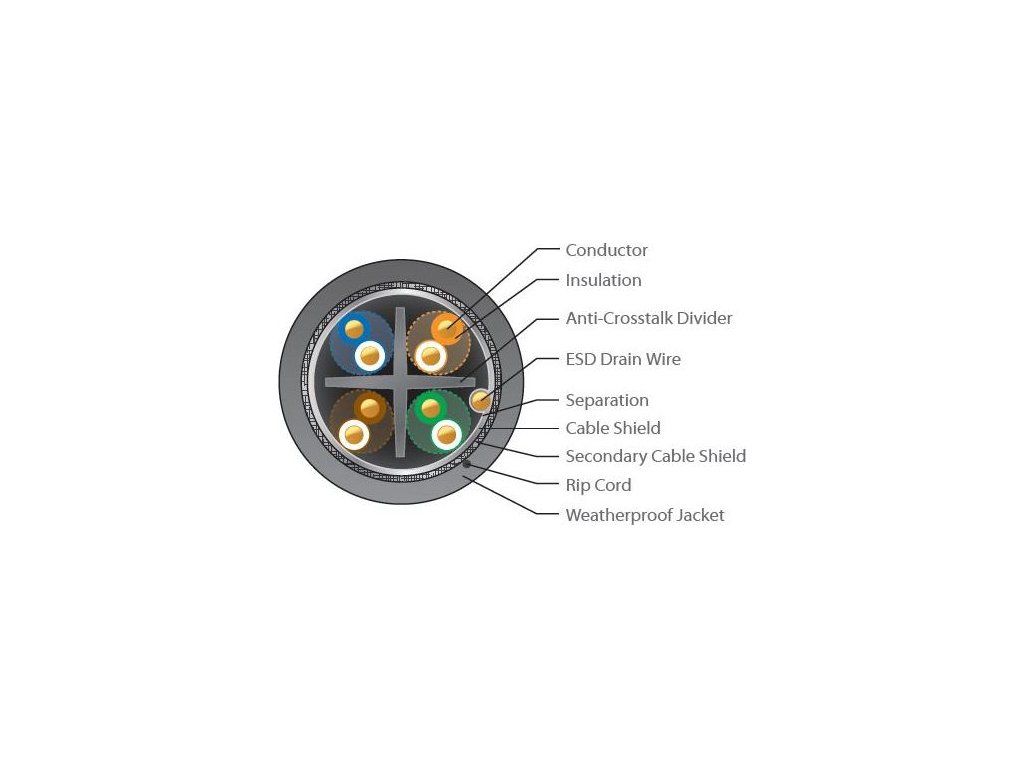 - Cat5e stíněný venkovní (outdoor) kabel
