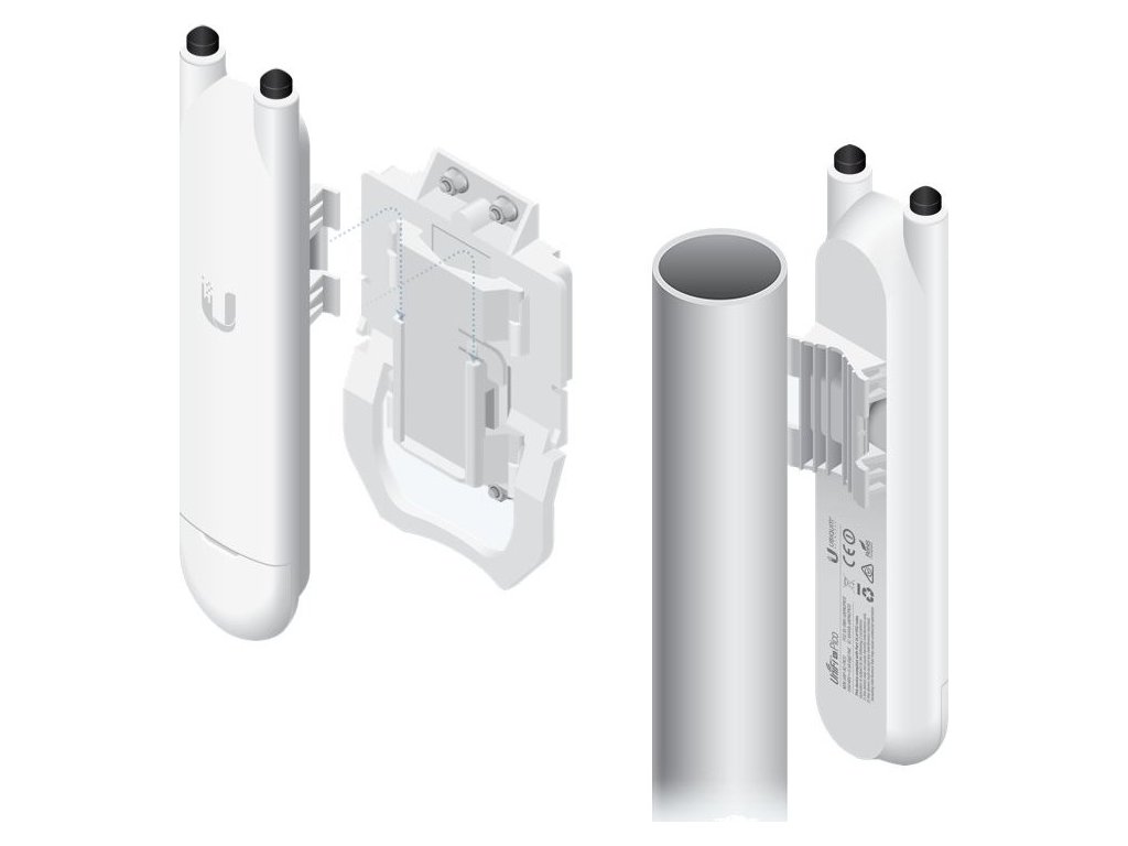 UAP-AC-M je navržené tak, aby se snadno montovalo na zeď, stožár a díky redukci, která je součástí balení, i na antény Ubiquiti s Rocket-kitem.