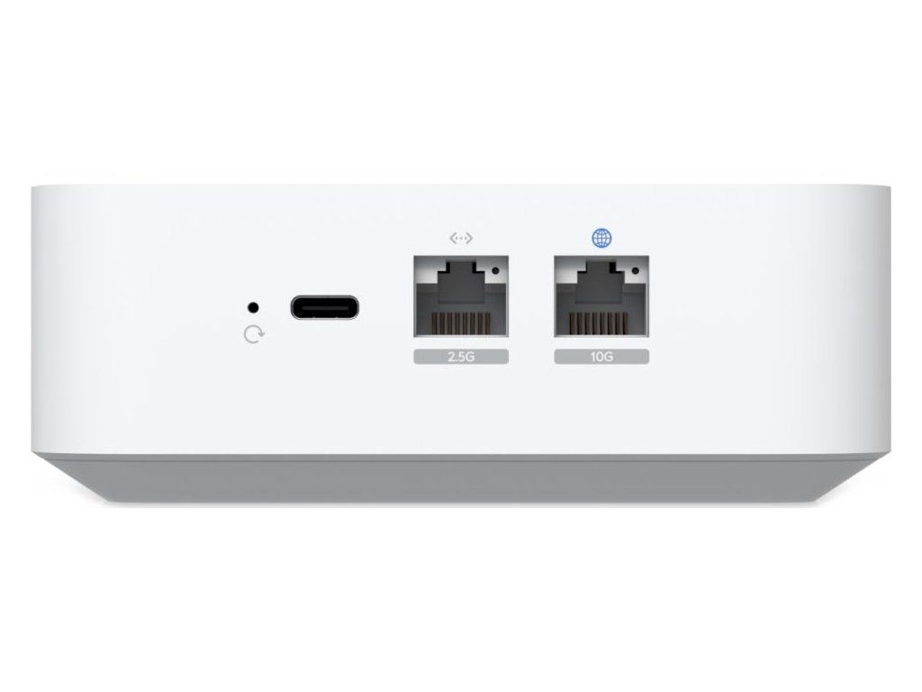 Porty: 1× 2,5GbE RJ-45 LAN, 1× 10GbE RJ-45 WAN, 1× USB-C (napájení)