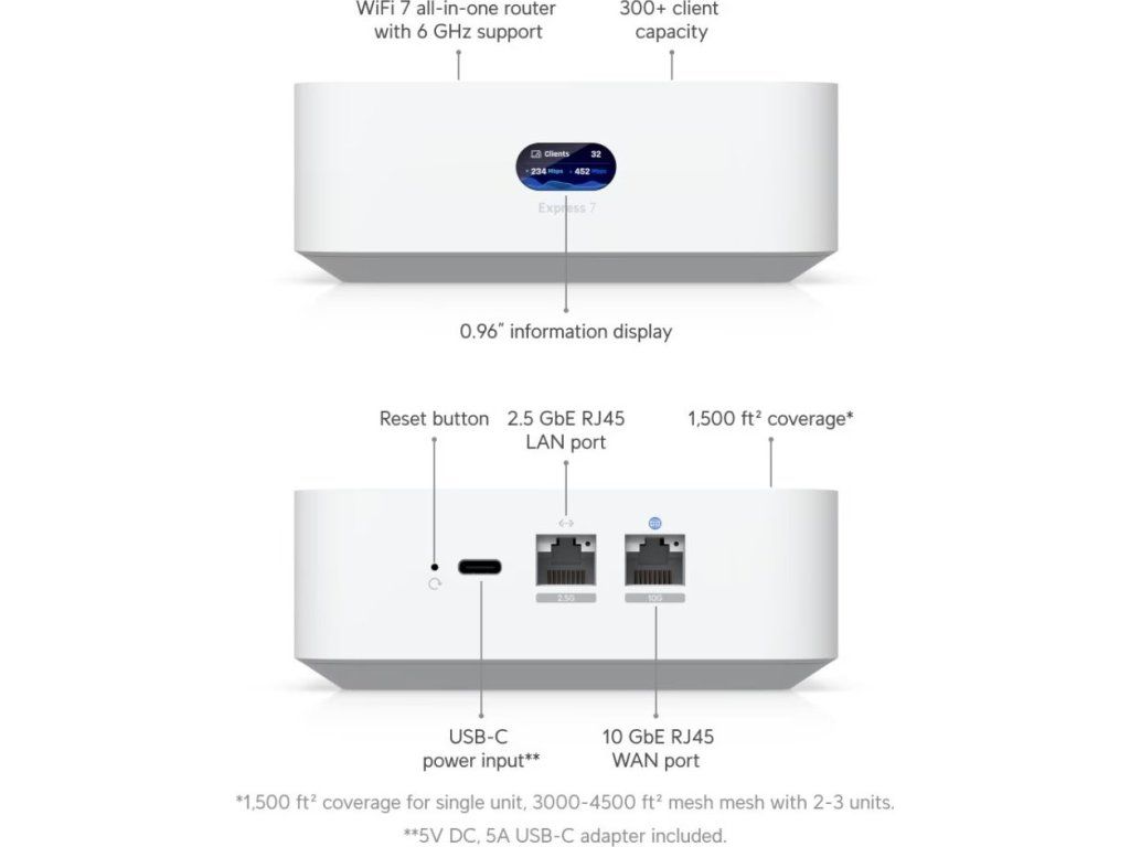 Ubiquiti UniFi Express 7 - Router/AP, 2,4/5/6GHz, Wi-Fi 7, až 10,7 Gbps, UniFi Network OS, IDS/IPS, 1x 2.5GbE, 1x 10GbE