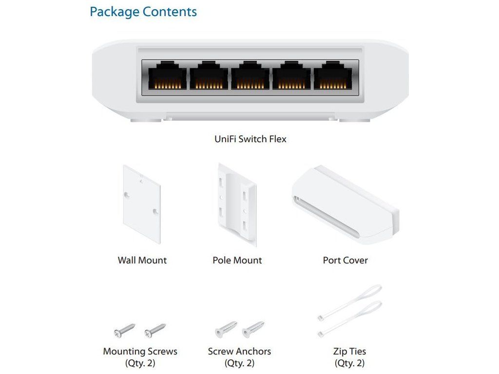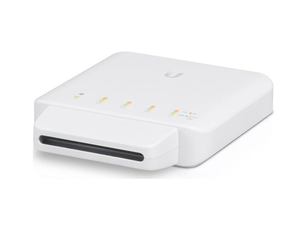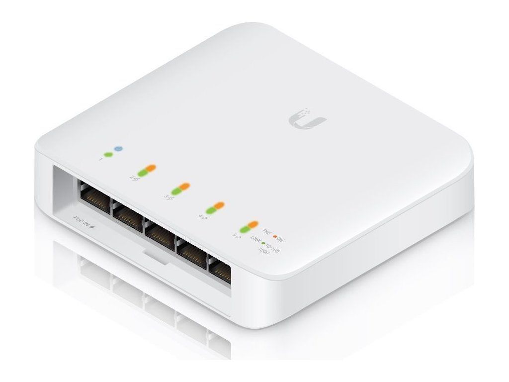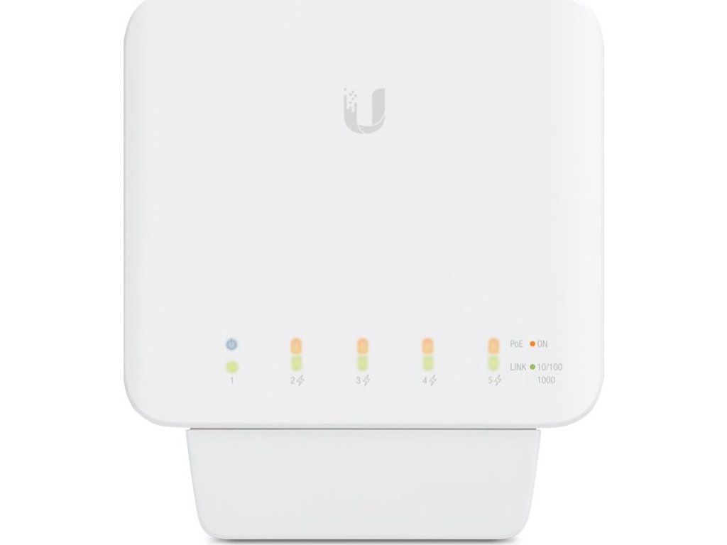 UniFi Switch USW-Flex je výkonný plně gigabitový PoE switch známého výrobce Ubiquiti ze série UniFi. Je osazen 5x Gbit ethernetovými porty s podporou PoE výstupu až 15 W na port, celkově 46 W pokud je napájen PoE++ (802.3bt) nebo pomocí PoE adaptéru 50V/60W. Switch nabízí možnost instalace na sloup i na zeď.