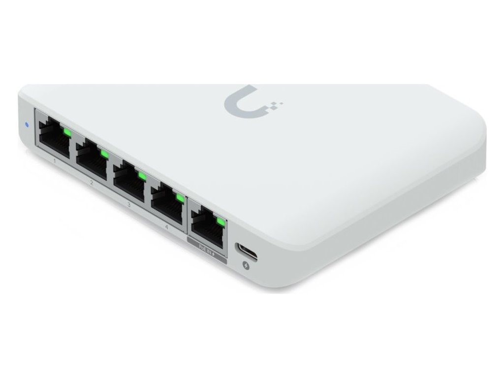 Ubiquiti UniFi Switch Flex Mini 2.5GUniFi Switch Flex Mini 2.5G je osazen pěti 2,5G RJ-45 porty. Jedná se o L2 switch s celkovou kapacitou 25 Gbps a ryhlostí směrování 18,6 Mpps. Switch lze napájet buď přes USB-C konektor, nebo pomocí PoE.