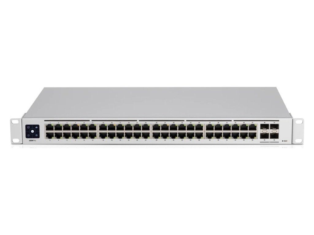 Ubiquiti UniFi Switch Pro 48UniFi Switch Pro 48 (USW-Pro-48) je spolehlivý switch s managementem v profesionálním provedení s možností montáže do racku. UniFi Switch Pro 48 je vysoce výkonný L3* přepínač disponující 48 GbE RJ-45 porty a 4 SFP+ sloty (10 Gb/s) pro připojení do optické sítě.