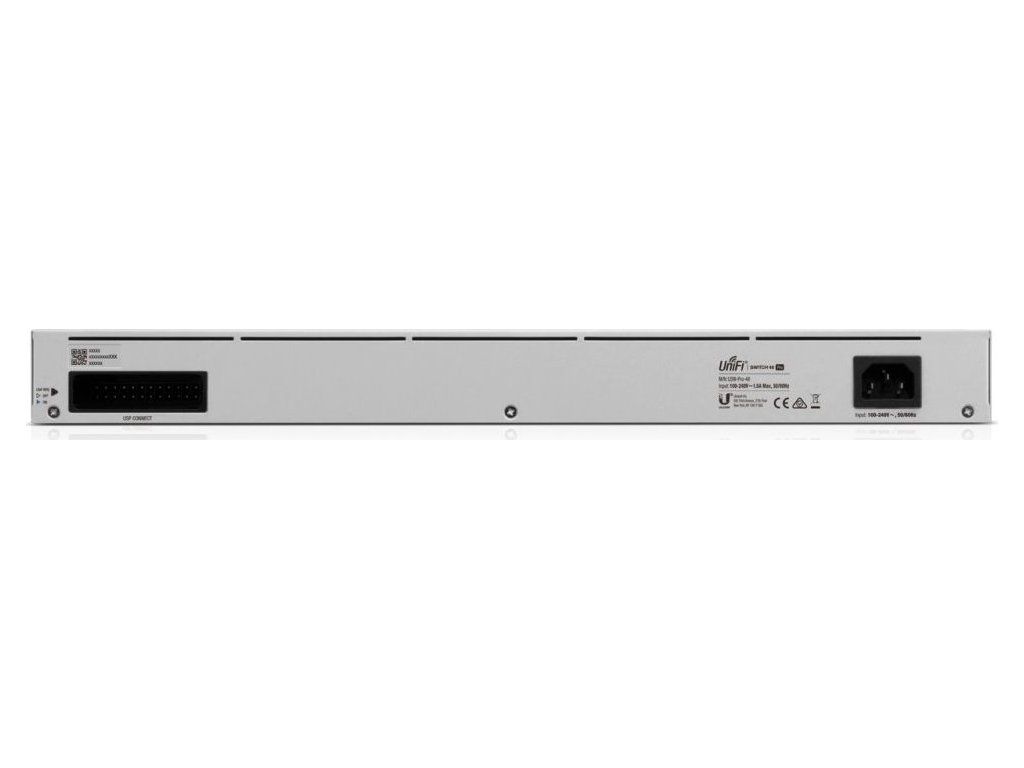 Switch obsahuje bohatou sadu funkcí vrstvy 2 a integruje funkce vrstvy 3, jako je inter-VLAN směrování, statické směrování a DHCP server. Je ideálním přepínačem agregační a přístupové vrstvy pro jakékoli řešení UniFi a kombinuje inovativní tiché chlazení s redundantním napájením UniFi SmartPower RPS.
