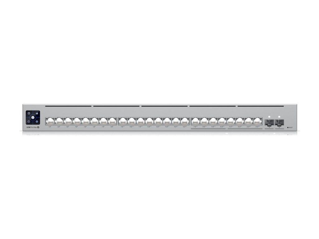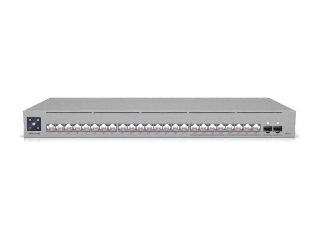 Ubiquiti UniFi Switch Pro Max 24 PoE 400 WUniFi Switch (USW-Pro-Max-24-PoE) je ideální pro malé a střední firmy, které požadují spolehlivý L3 switch s managementem v profesionálním provedení určený pro montáž do racku 1U.