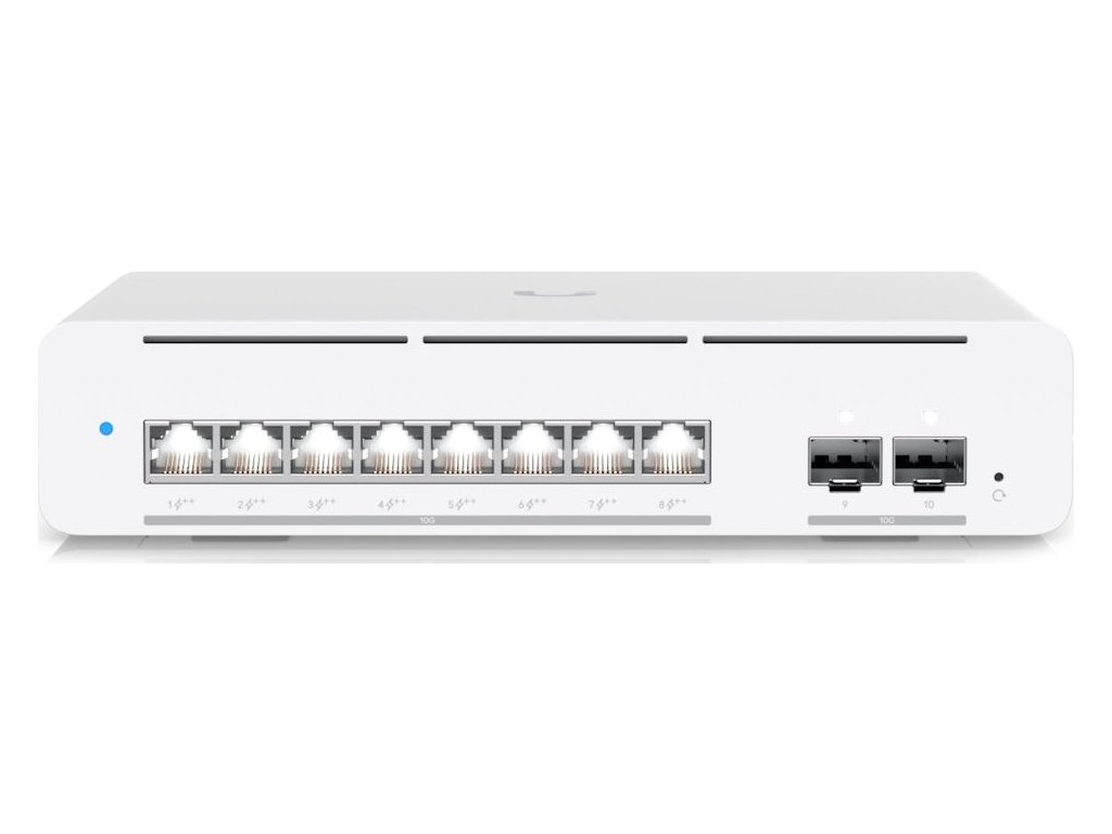 - 8× 10G PoE++ RJ-45 port a 2× 10G SFP+ slot