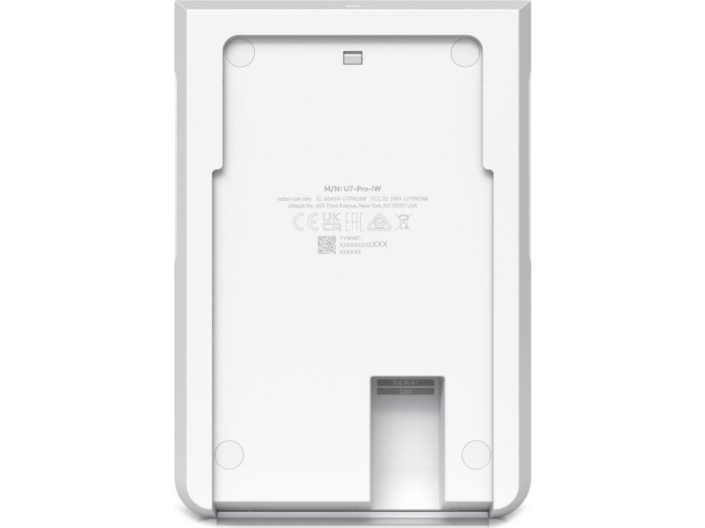 UniFi U7 Pro Wall je designově povedené vnitřní hotspotové řešení využívající standard 802.11a/b/g/n/ac/ax/be. Je vybaveno anténním systémem MIMO 2×2 v podobě integrovaných antén se ziskem 4 dBi/ 5 dBi/ 6 dBi (2,4 GHz/ 5 GHz/ 6 GHz).
