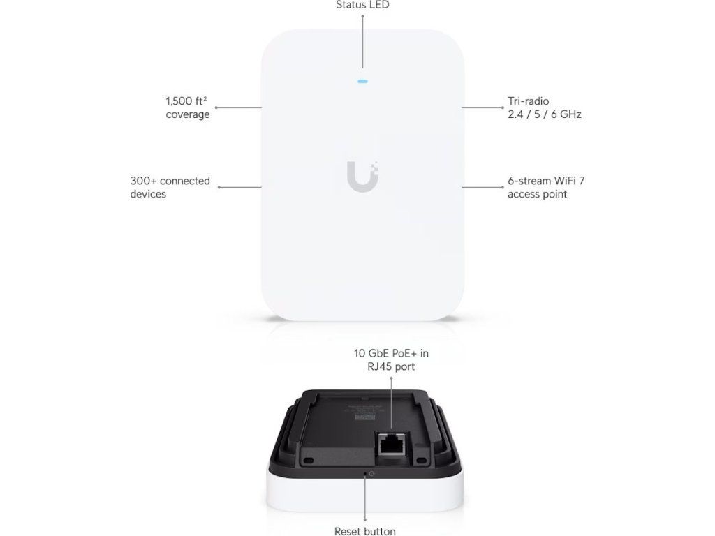 Access point podporuje nejnovější standard 802.11be s technologiemi jako EHT (Extremely High Throughput) a kanály šířky až 320 MHz v pásmu 6 GHz. Zpětná kompatibilita se standardy Wi-Fi 6, Wi-Fi 5 a 802.11n zajišťuje připojení všech zařízení.