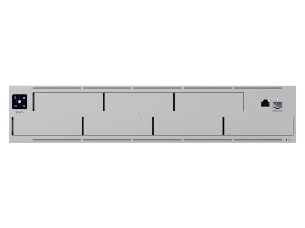 Ubiquiti UniFi UNAS ProNAS pro montáž do 2U racku disponující 7× 2,5/3,5" pozicemi pro disk, jedním GbE RJ-45 portem a jedním 10G SFP+ portem pro uplink. Vhodný pro ukládání a sdílení velkých souborů.