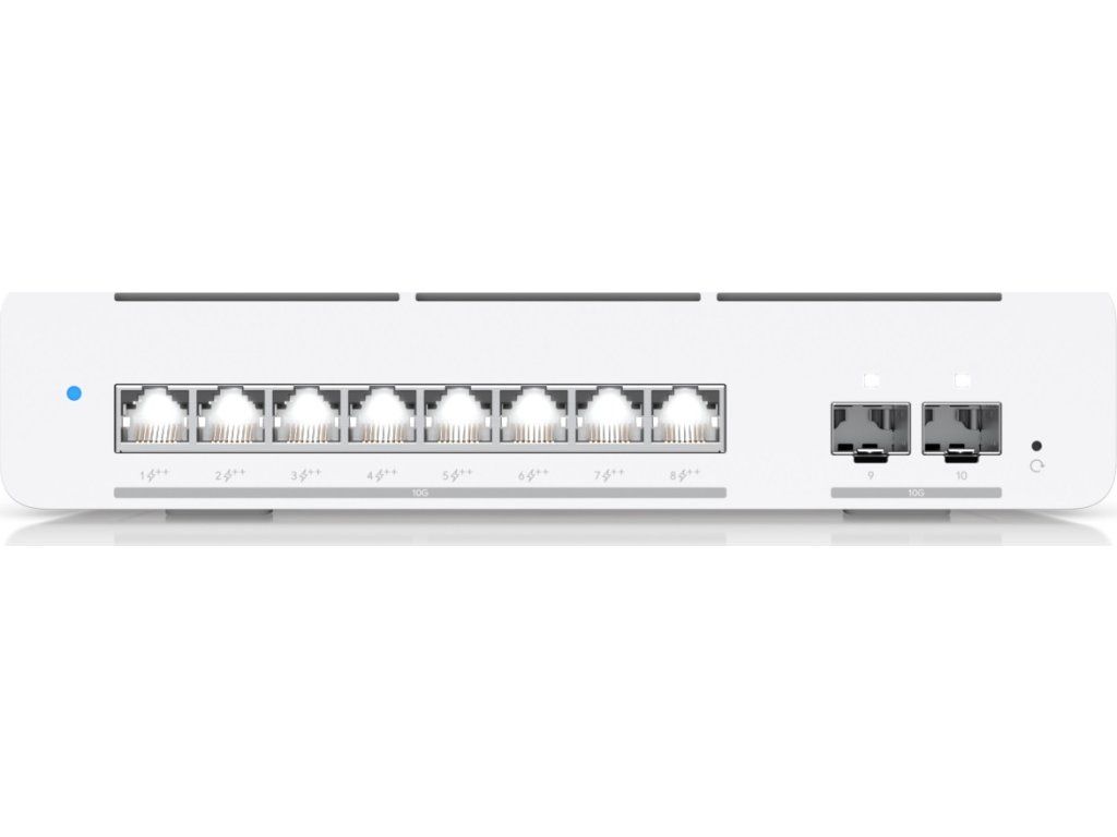 * 8x multi-speed 10 GbE RJ45 (vše PoE++) (10G/5G/2,5G/1G/100M)