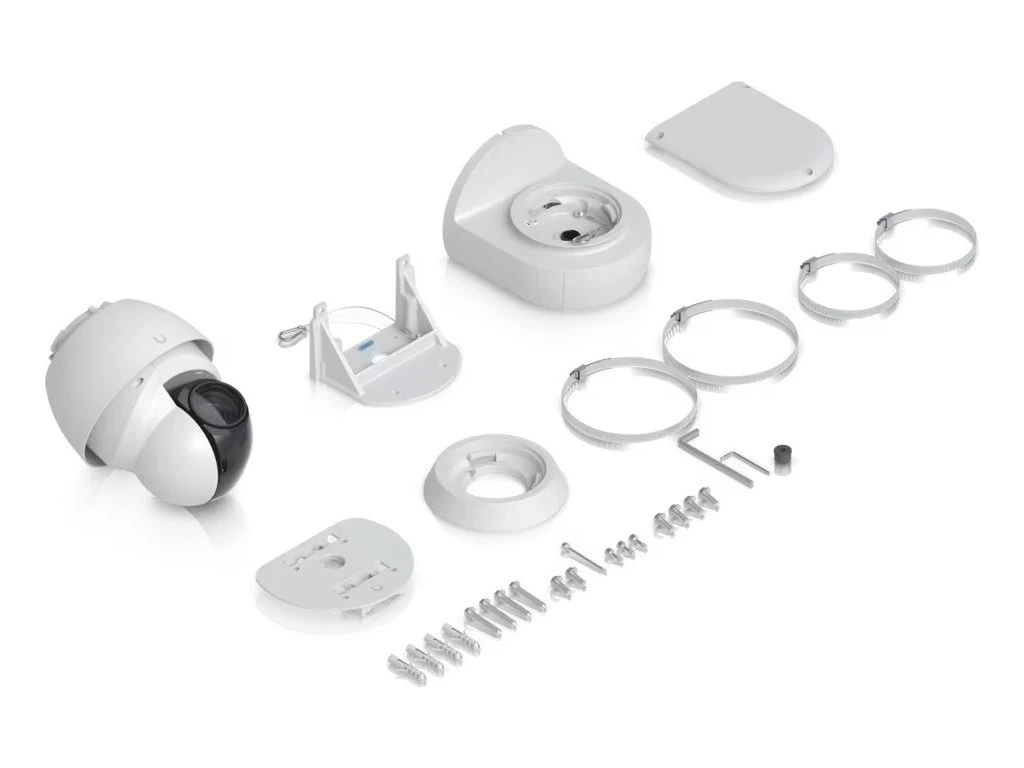 Jednou z bezprostředních výhod řady kamer UniFi AI je rozmanitost dodávaného montážního hardwaru. Kamera UniFi Protect PTZ nevyžaduje pro zahájení nasazení žádný další nákup.