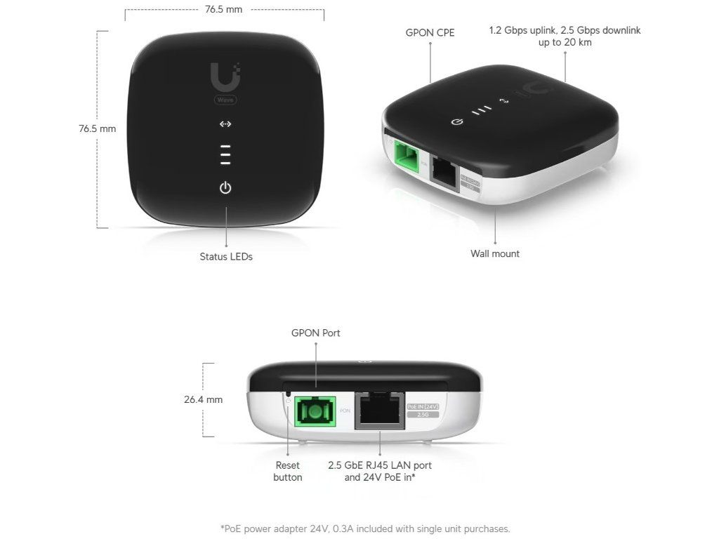 Web výrobce: https://techspecs.ui.com/uisp/fiber/wave-fiber-onu?s=us