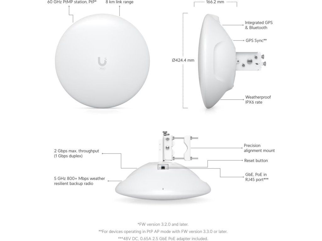Ubiquiti Wave Long Range - 60GHz PtP/PtMP klient, 46dBi, 5GHz záloha, 1x GbE, propustnost 2Gbps