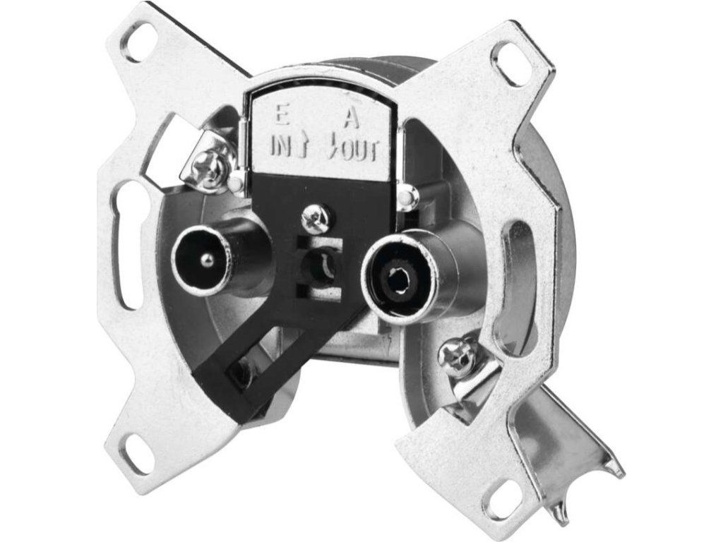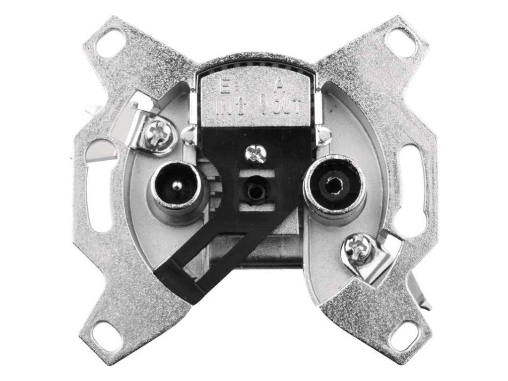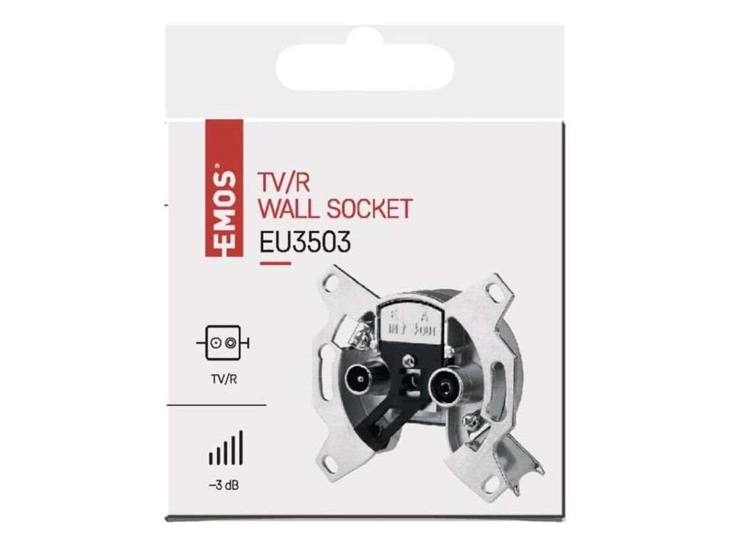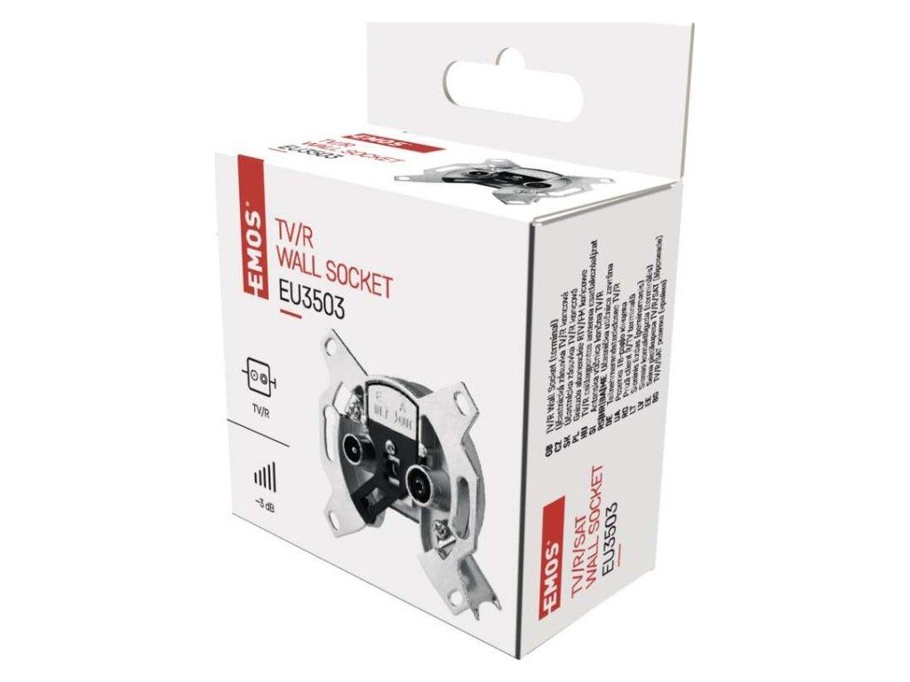 Účastnická zásuvka EU 3503 koncová s útlumem 3 dB a zdířkami pro TV + Rádio. Účastnická zásuvka propojuje např. anténu s televizí, satelitem, set-top-boxem, internetem nebo telefonem. Zásuvka není průchozí pro stejnosměrné napětí.