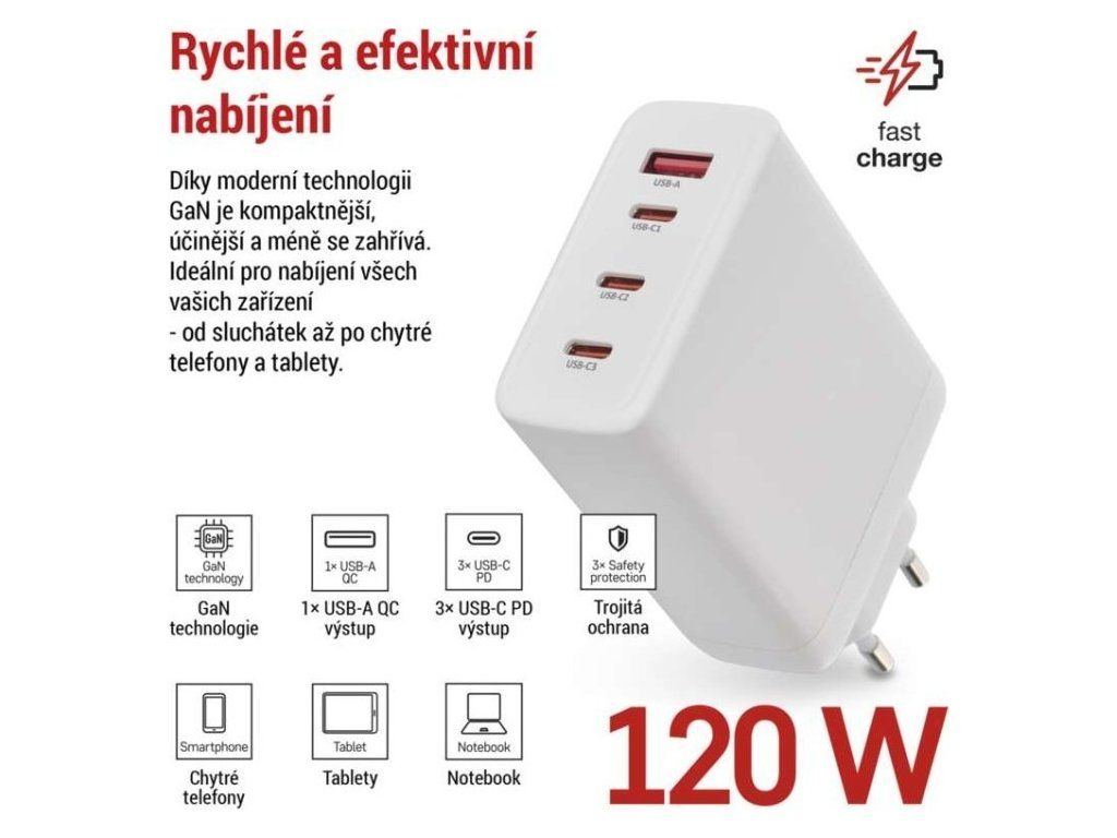 Univerzální USB adaptér GaN do sítě PD 120 W max.