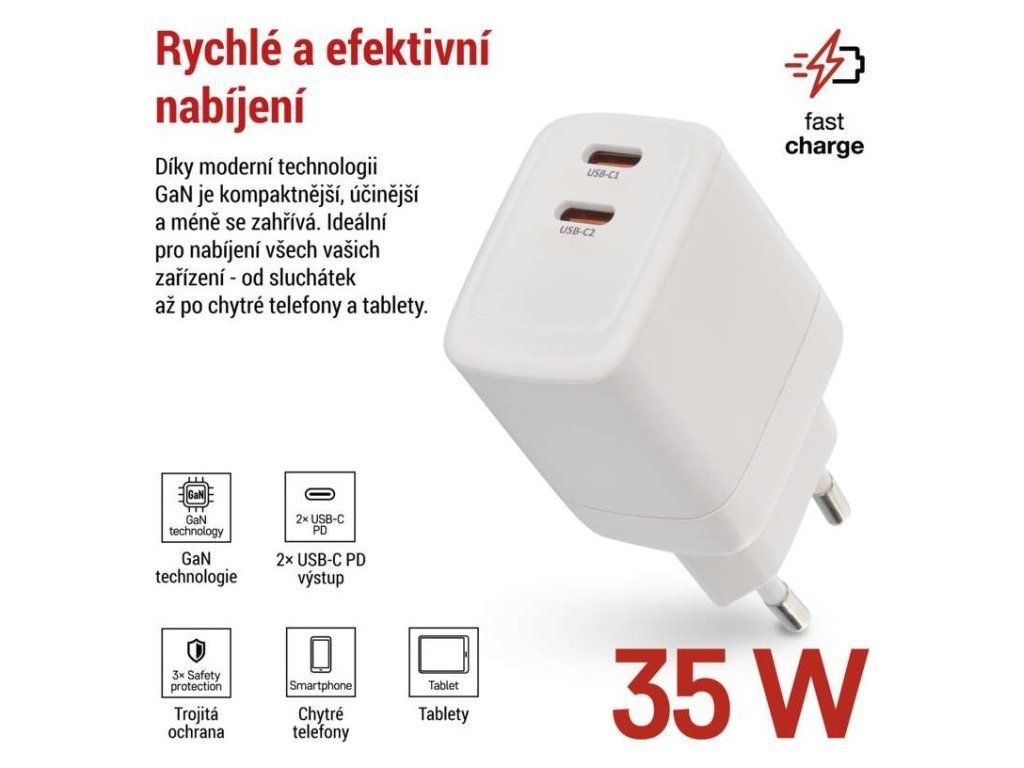 Univerzální USB adaptér GaN do sítě PD 35 W max.