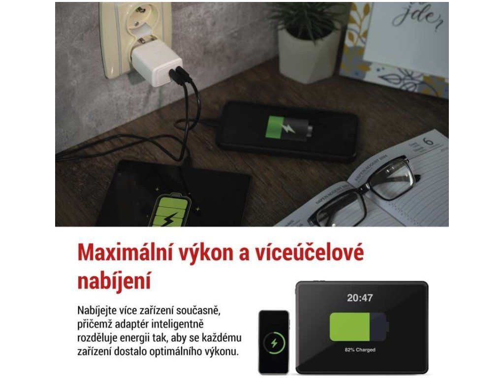 Přímá a kompletní náhrada za původní USB nabíječku. Univerzální nabíjecí USB adaptér do sítě pro mobilní telefony, smartphony, tablety a další zařízení.
