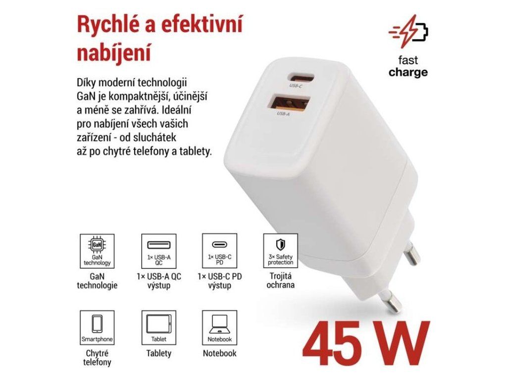 Univerzální USB adaptér GaN do sítě PD 45 W max.