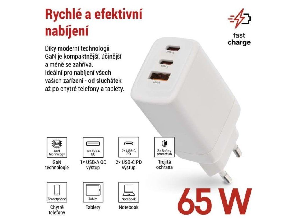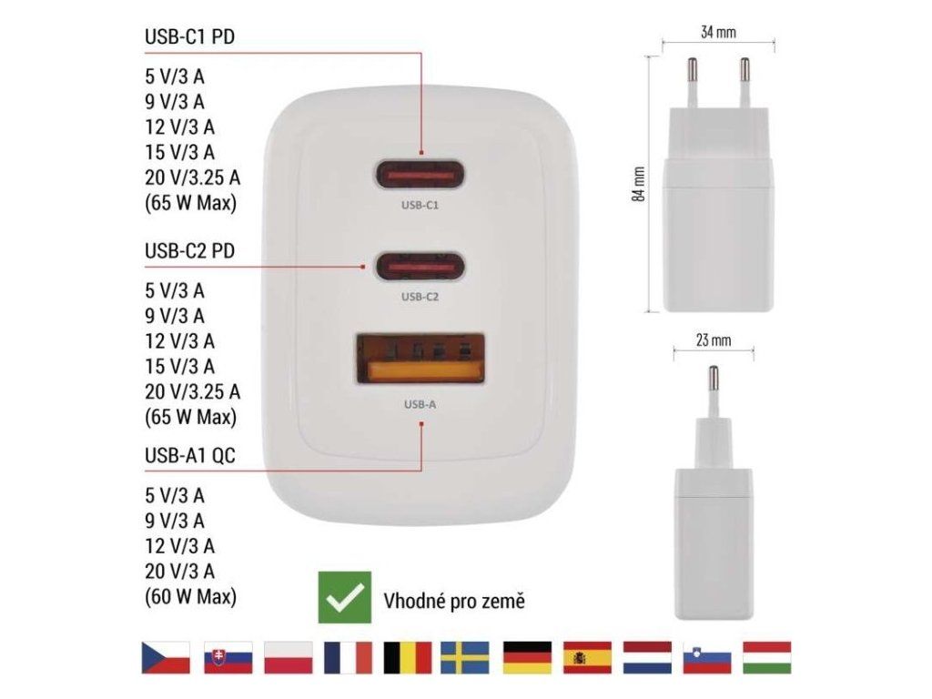 Univerzální USB adaptér GaN do sítě PD 65 W max.