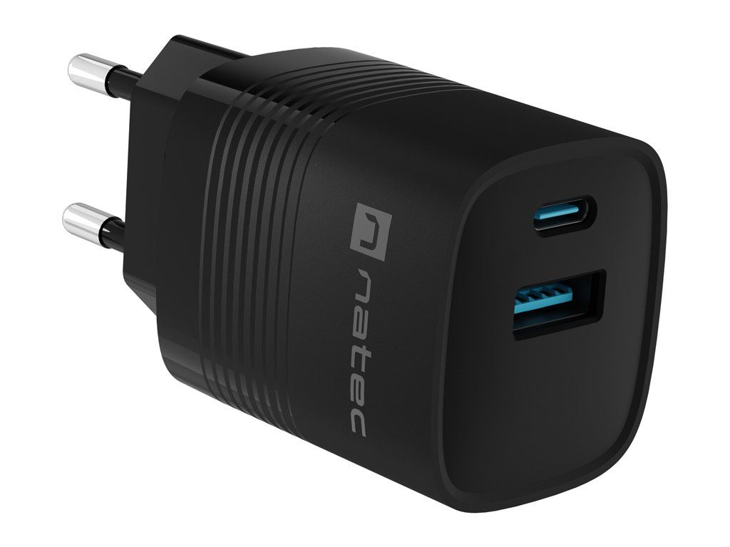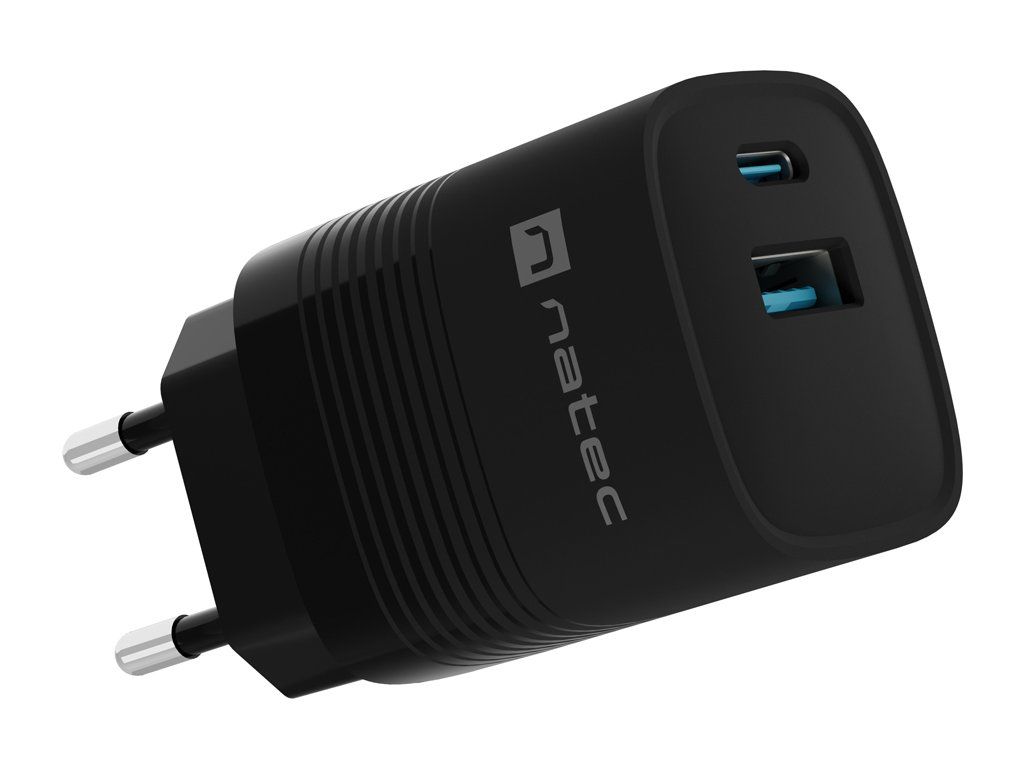 Univerzální USB nabíječka Natec RIBERA GaN 30 W, 1X USB-A, 1X USB-C, černá