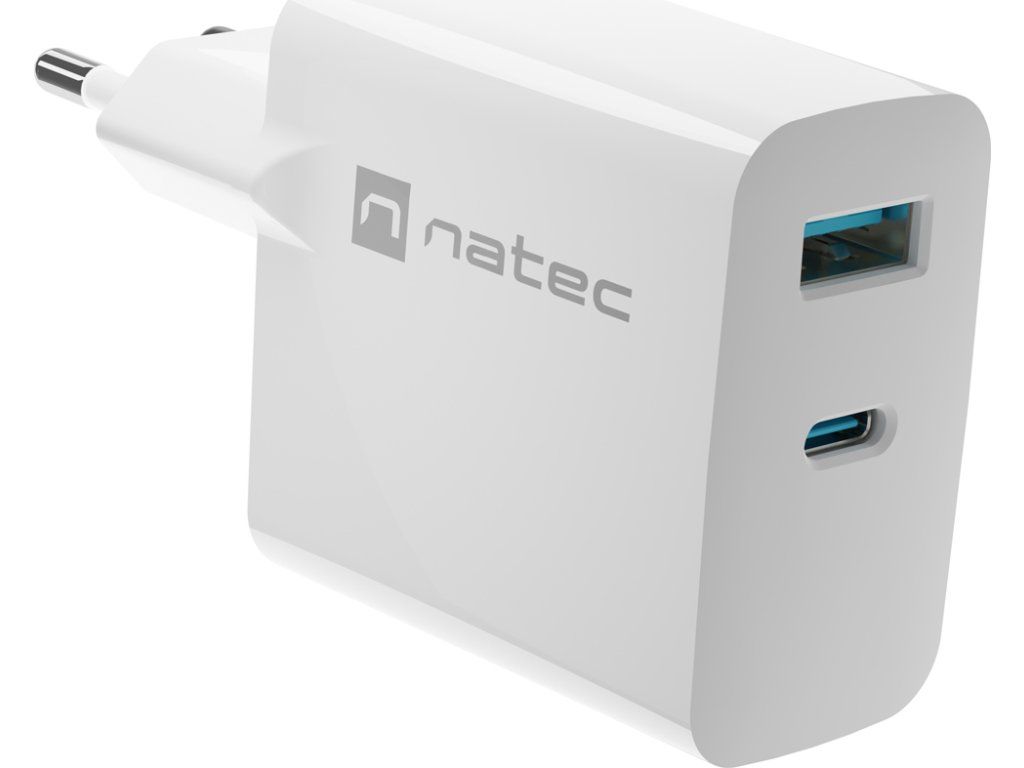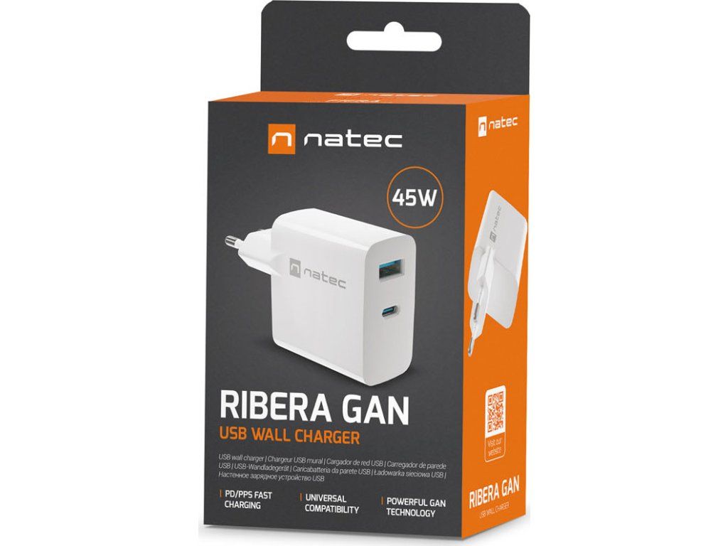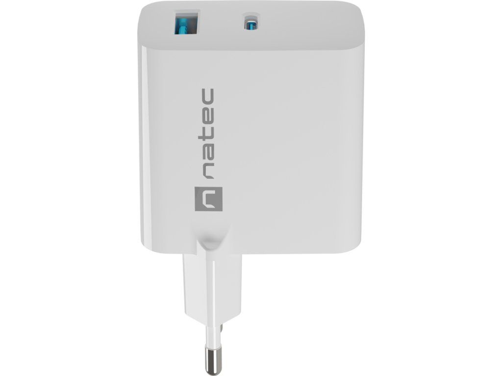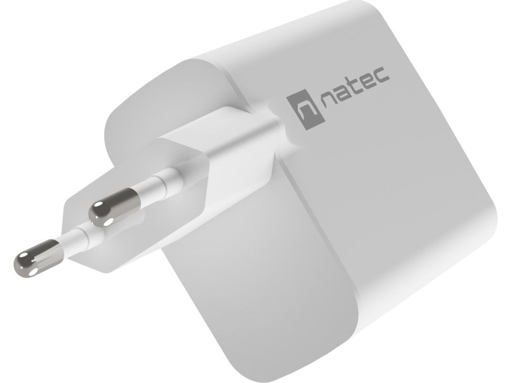 Univerzální USB nabíječka Natec RIBERA GaN 45W, 1X USB-A, 1X USB-C, bílá