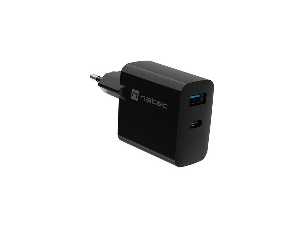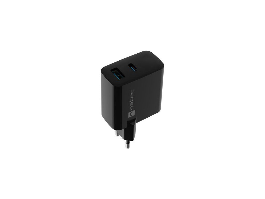 Univerzální USB nabíječka Natec RIBERA GaN 65W, 1X USB-A, 1X USB-C, Černá
