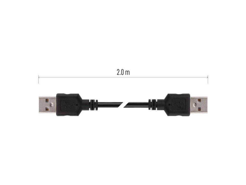 USB kabel 2.0 s vidlicemi USB A. Délka kabelu je 2 m. USB kabel je vhodný pro PC periferní zařízení. Kabel je plně stíněný pro redukci elektromagnetického rušení. Kabel má černou barvu.