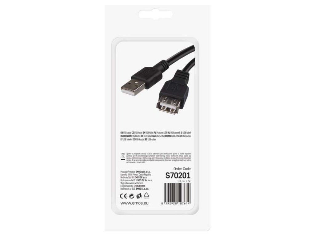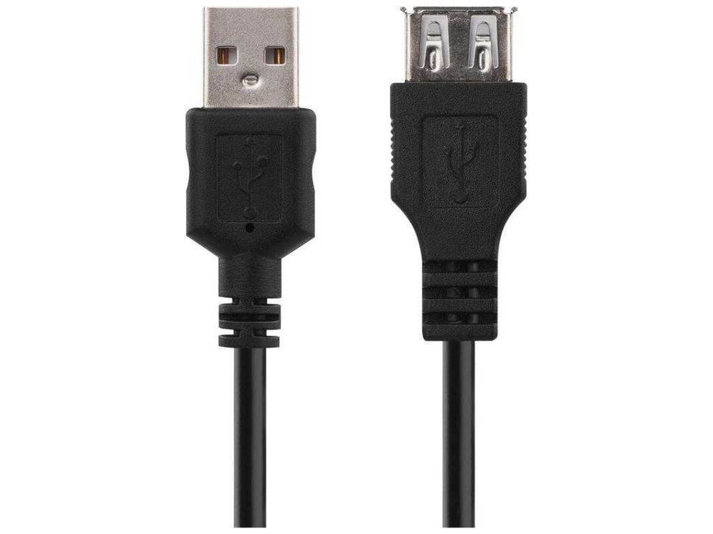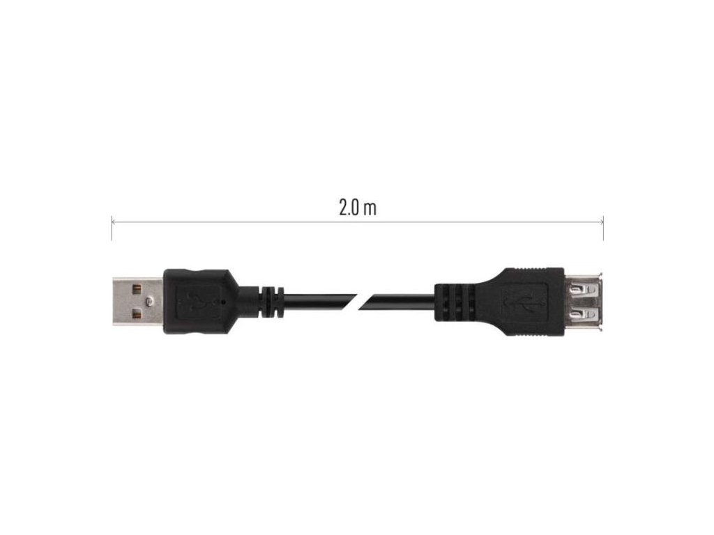 USB kabel 2.0 s vidlicí USB A a zásuvkou USB A. Délka kabelu je 2 m. USB kabel je vhodný pro PC periferní zařízení. Kabel je plně stíněný pro redukci elektromagnetického rušení. Kabel má černou barvu.