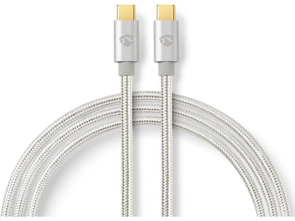USB kabel | USB 2.0 | USB-C™ Zástrčka | USB-C™ Zástrčka | 100 W | 480 Mbps | Pozlacené | 2.00 m | Kulatý | Nylon / Opletený | Stříbrná | Box s Okénkem