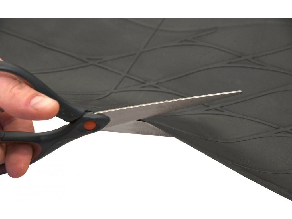 Koberec má rozměry 120 x 80 cm a je možné jej zastříhnout, podél vodících čar, na potřebný rozměr.