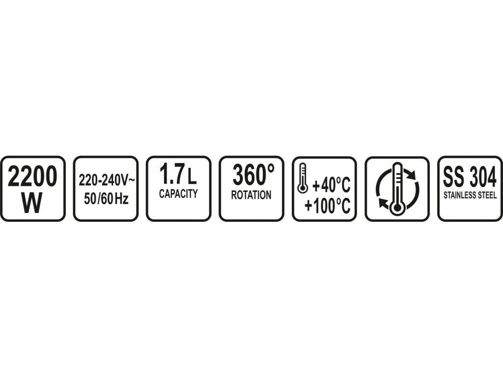 Příkon 1850 - 2200W zajistí rychlé ohřátí 1,7l vody na přednastavenou teplotu, kterou lze snadno navolit pomocí ovládacího panelu na rukojeti.