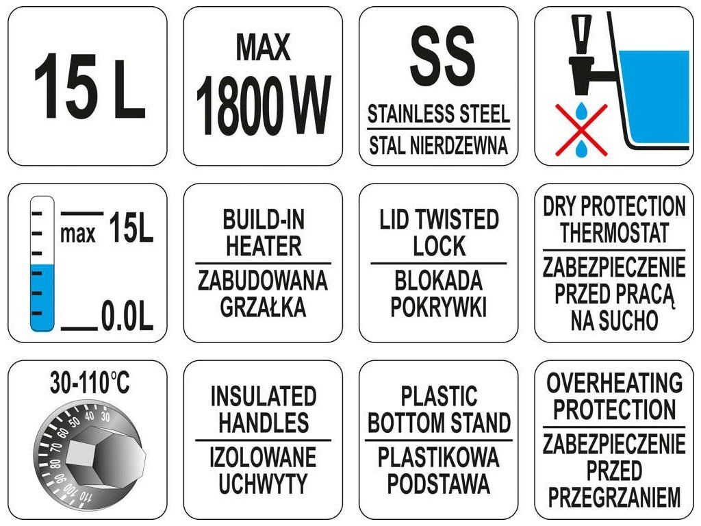 Varný termos 1800W 15l plastové úchyty