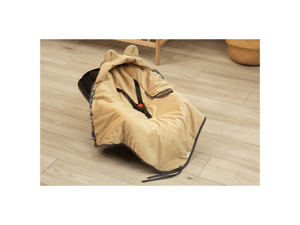 Autosedačka Velvet byla vytvořena s ohledem na nejmenší děti. Je pohodlná a teplá a navíc velmi praktická. Je alternativou teplého dětského oblečení. Díky otvorům pro 3-bodové pásy je velmi funkční - nemusíte pásy rozepínat, abyste objevili dítě v nosiči. Zavinovačka má kapuci s roztomilými oušky, která je nastavitelná pomocí šňůrky. Je vyplněna antialergickou vložkou. Uvnitř je jemná sametová látka.