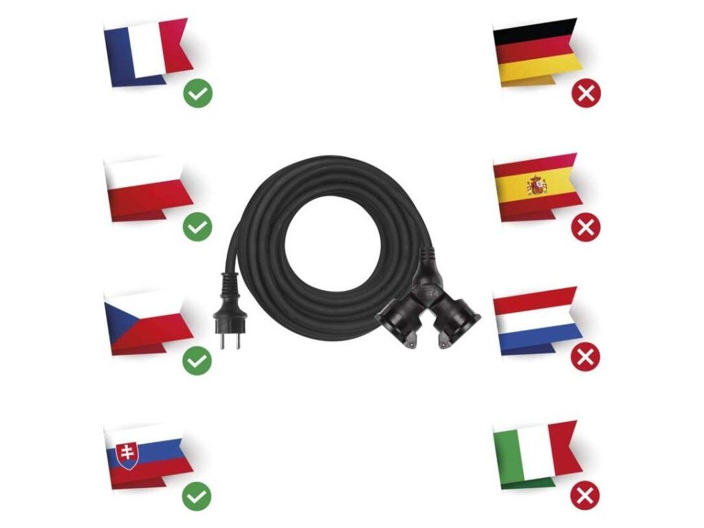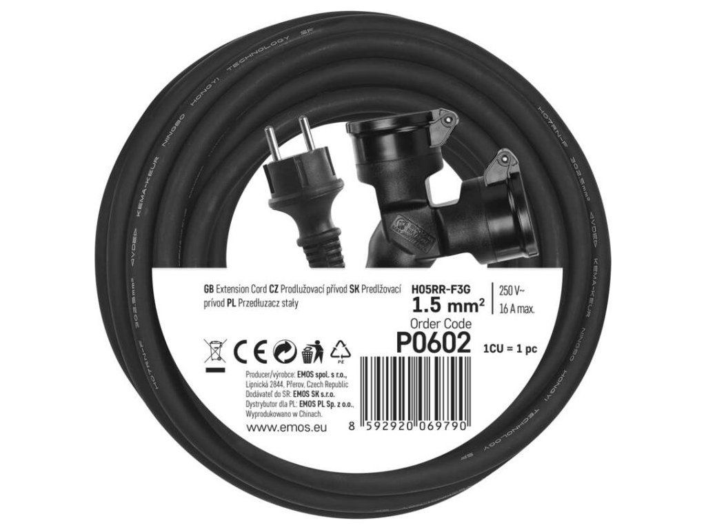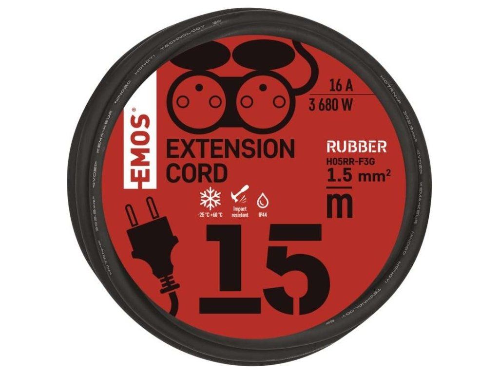 Venkovní prodlužovací kabel 15 m / 2 zásuvky / černý / guma / 230 V / 1,5 mm2