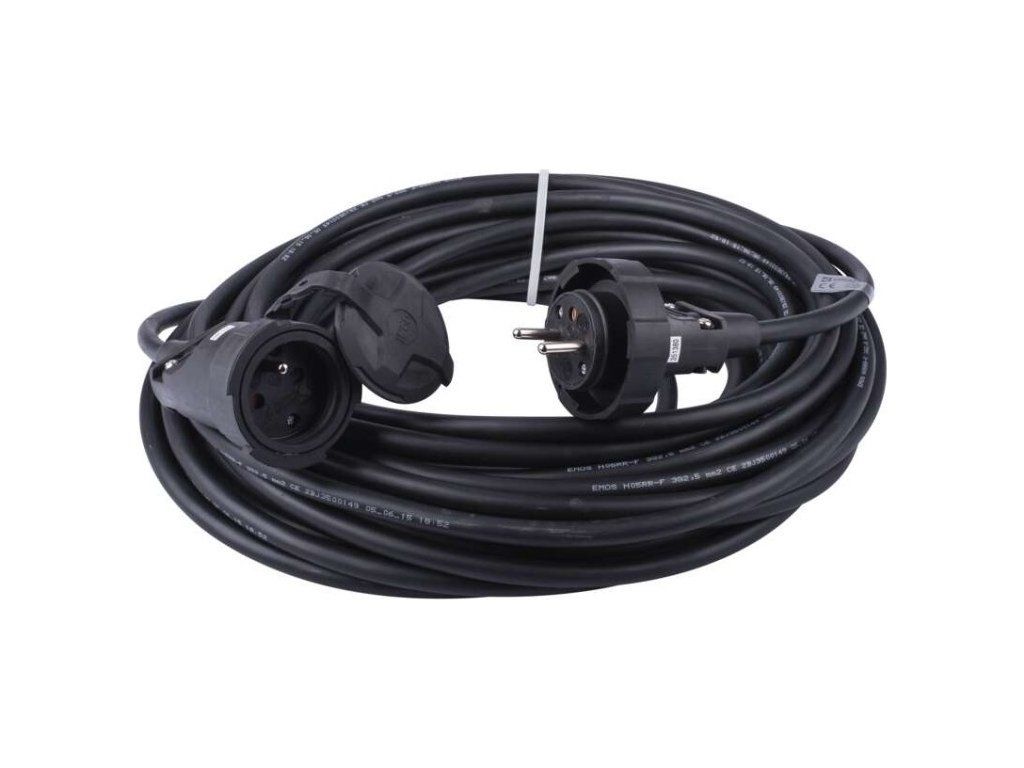 Venkovní prodlužovací kabel 20 m / 1 zásuvka / černý / guma / 230 V / 2,5 mm2