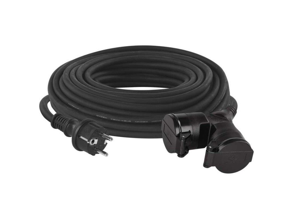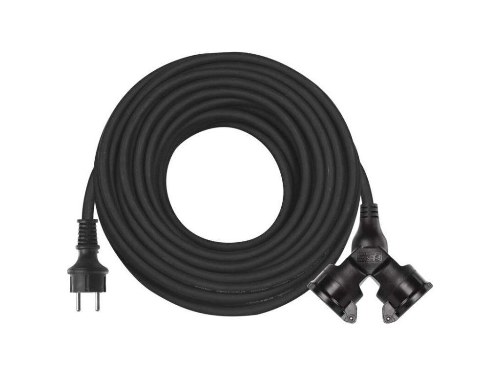 Venkovní prodlužovací kabel 25 m / 2 zásuvky / černý / guma / 230 V / 1,5 mm2
