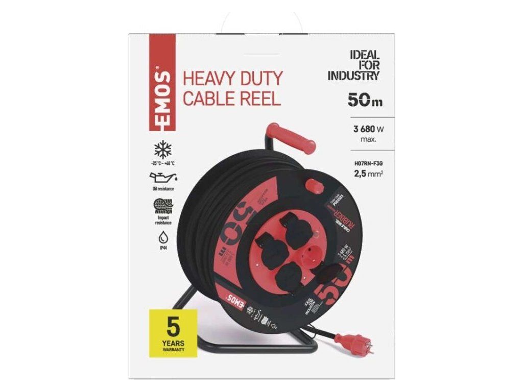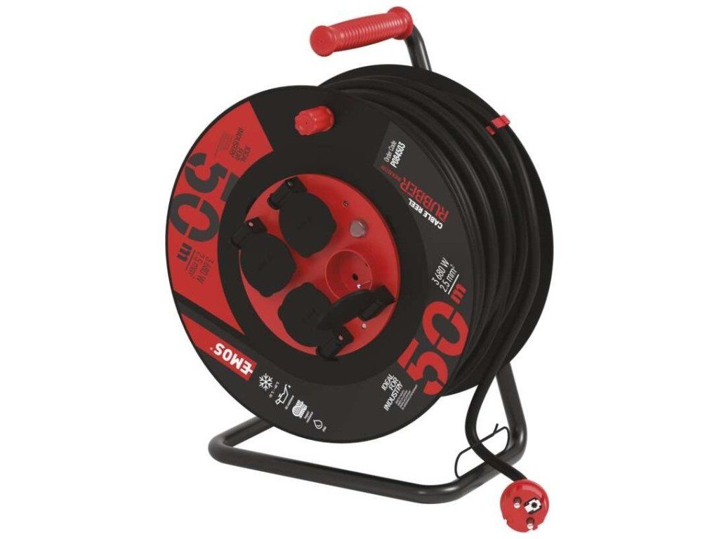 Venkovní prodlužovací kabel na bubnu 50 m / 4 zás. / černý / guma-neopren / 230V / 2,5 mm2