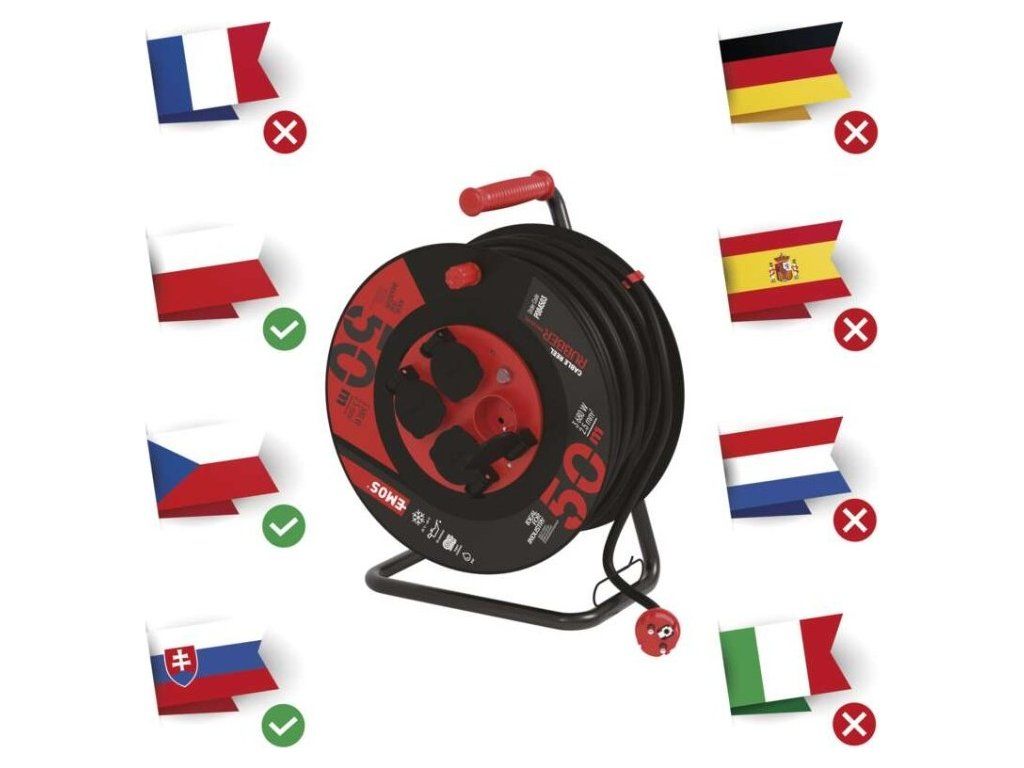 Kvalitní gumový naviják prodlužovacího přívodu. Je ideální pro prodloužení napájecí sítě 230V~. Jeho výhodou je pohodlná manipulace díky bubnu.