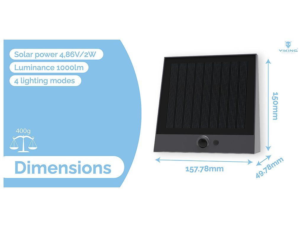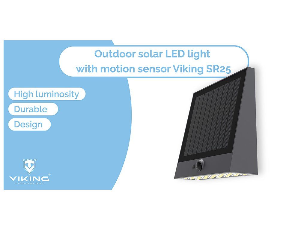PIR senzor s úhlem detekce 120° má dosah až 5 metrů. Jakmile bude detekován pohyb, světlo se automaticky rozsvítí. Moderní a výkonný monokrystalický solární panel poskytuje vysoký nabíjecí výkon. Viking SR25 disponuje robustním provedením s certifikovaným stupněm odolnosti IP54.