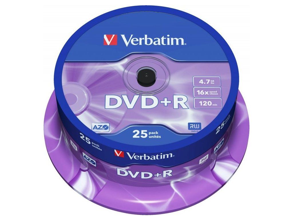 VERBATIM DVD+R(25-Pack)Spindl/MattSlvr/16x/4.7GB