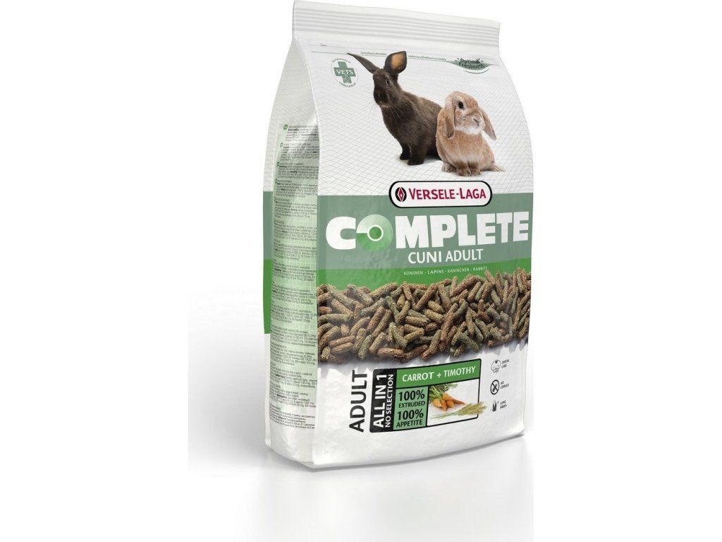 Králíci (i ti zakrslí) jsou od přírody býložravci, kteří potřebují stravu s dostatečně vysokým obsahem vlákniny a nízkým obsahem škrobu. 100% extrudované jednosložkové krmivo jim tyto potřeby pokryje. Krmivo Cuni Complete zlepšuje funkci střev a pomáhá k udržení ideální hmotnosti. Začleněním neporušených dlouhých kousků vlákniny s velkým poměrem křemičitanů do pelet je dosaženo maximálního přežvykování, obrusu zubů a zdravé ústní dutiny.