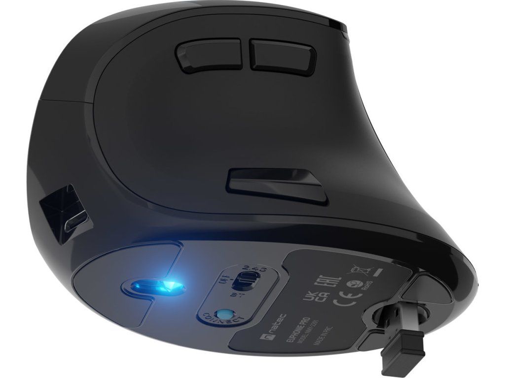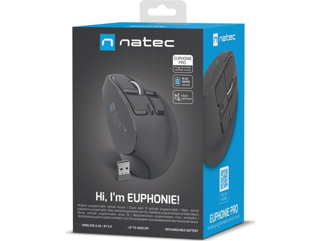 Vertikální bezdrátová myš Natec EUPHONIE PRO/Vertikální/Blue Sense/Pro praváky/4 000 DPI/USB+BT/Čern