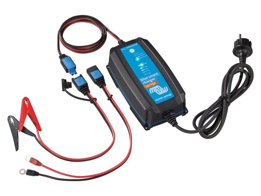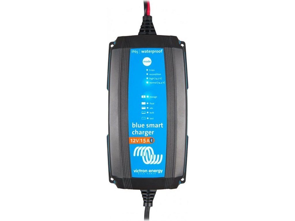 Victron BlueSmart IP65 nabíječkaVodě i prachu odolná nabíječka s vestavěnou technologií Bluetooth, umožňující zobrazit informace z vaší nabíječky do chytrého telefonu, tabletu nebo počítače. Optimální pro baterie o kapacitě 80-180 Ah.