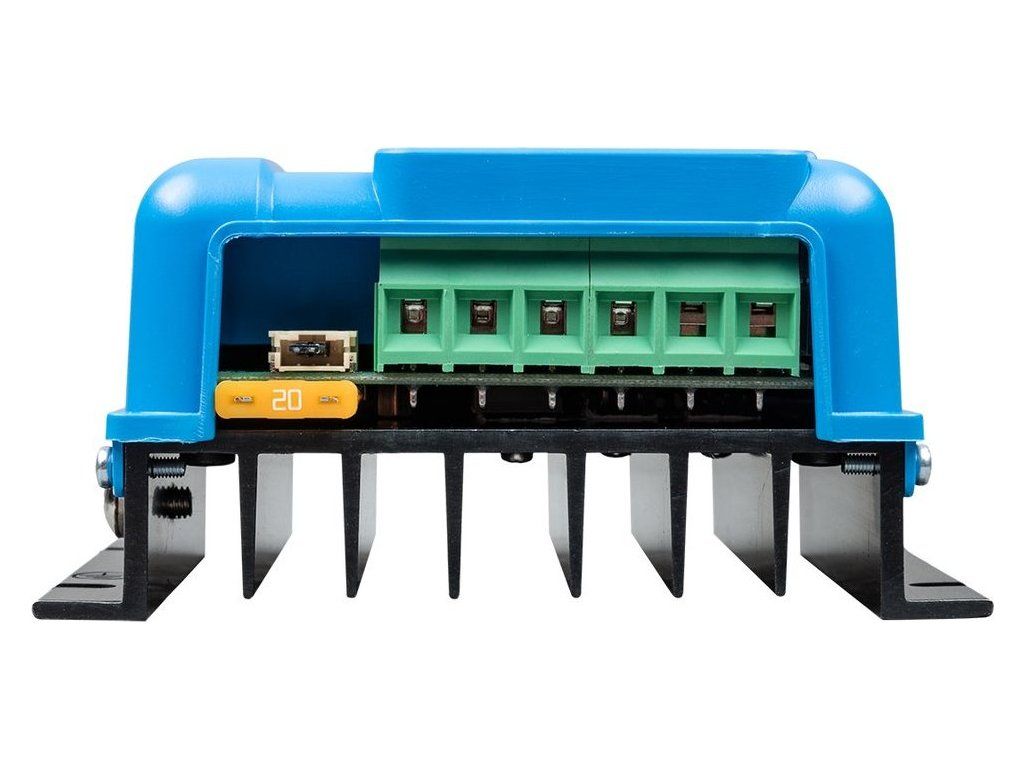 Solární regulátor BlueSolar zpracovává energii ze solárních panelů a ukládá ji do baterií, maximalizuje solární zisky, inteligentně udržuje stav baterie a prodlužuje její životnost. Solární regulátor BlueSolar umí dobít i silně vybitou baterii, protože může pracovat s napětím baterie až 0 voltů za předpokladu, že články nejsou trvale sulfatovány nebo jinak poškozeny.