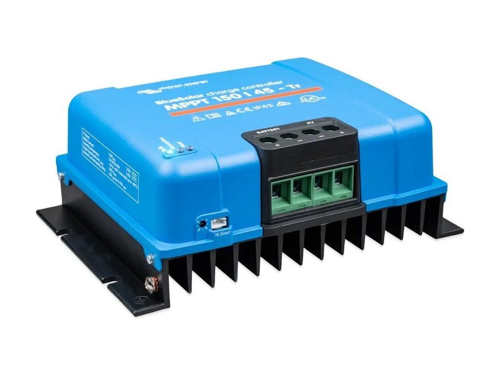 Solární regulátor BlueSolar zpracovává energii ze solárních panelů a ukládá ji do baterií, maximalizuje solární zisky, inteligentně udržuje stav baterie a prodlužuje její životnost. Solární regulátor BlueSolar umí dobít i silně vybitou baterii, protože může pracovat s napětím baterie až 0 voltů za předpokladu, že články nejsou trvale sulfatovány nebo jinak poškozeny.