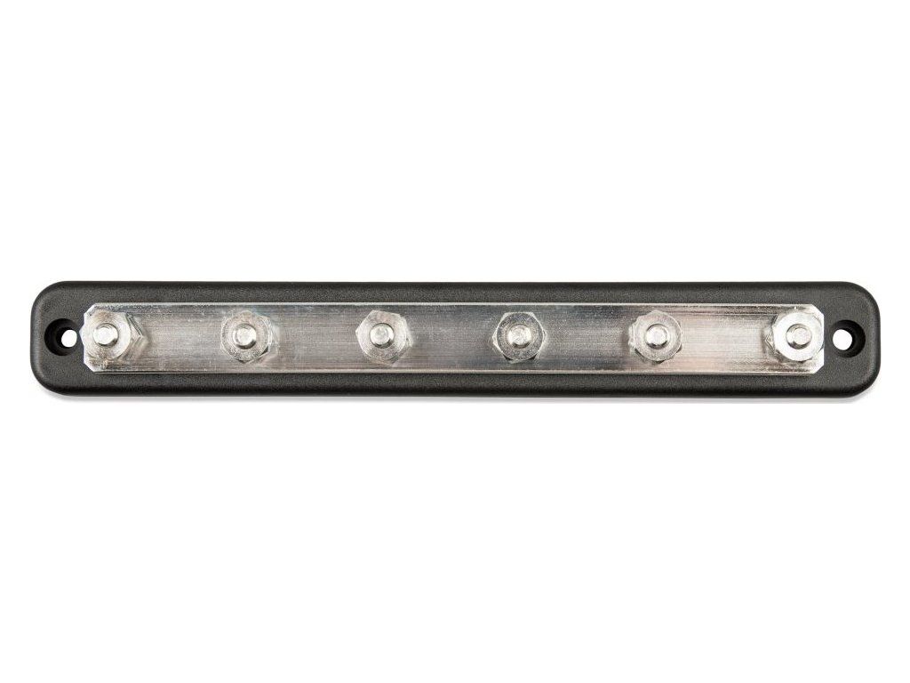 Victron DC přípojnice 150 A 6PDC přípojnice (busbar) se používá pro distribuci vysokého DC proudu a současně také slouží jako připojení pro baterie a/nebo DC zařízení. Každá DC přípojnice je vybavena odnímatelným ochranným krytem.